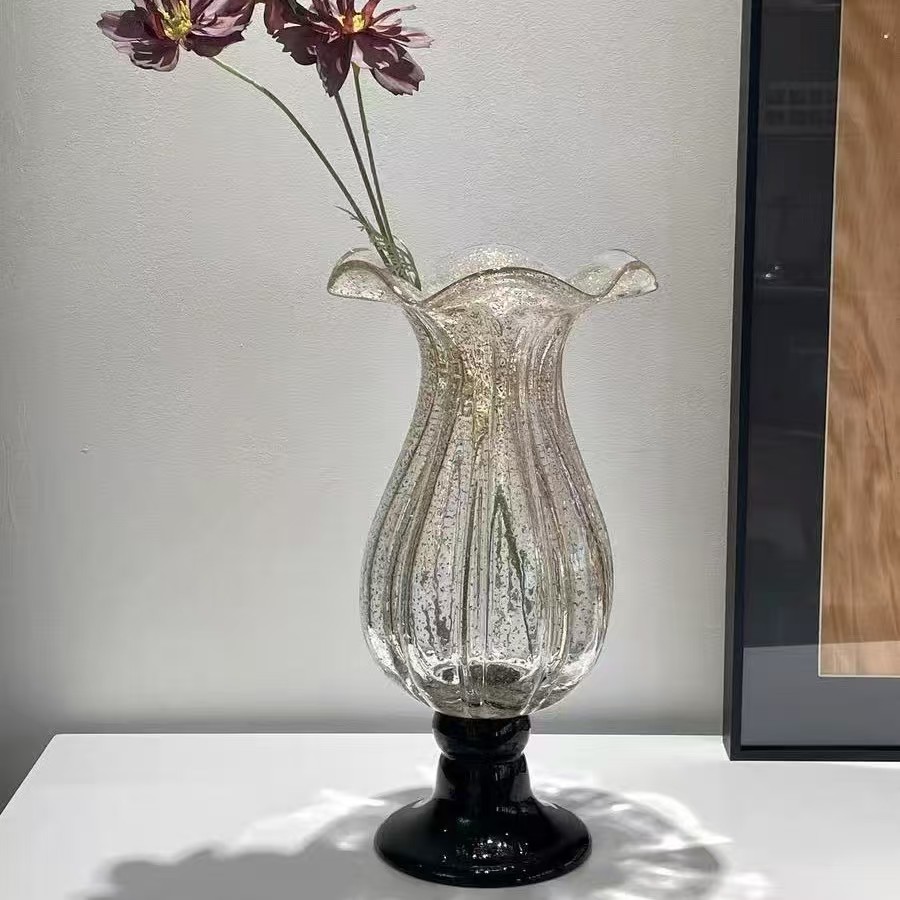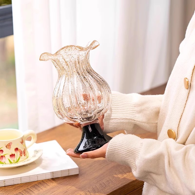 ຊື່ຜະລິດຕະພັນ: ຄໍາທີ່ຫລູຫລາ Goldury-sprinkled vase ແກ້ວທີ່ສູງຂອງ vintage
